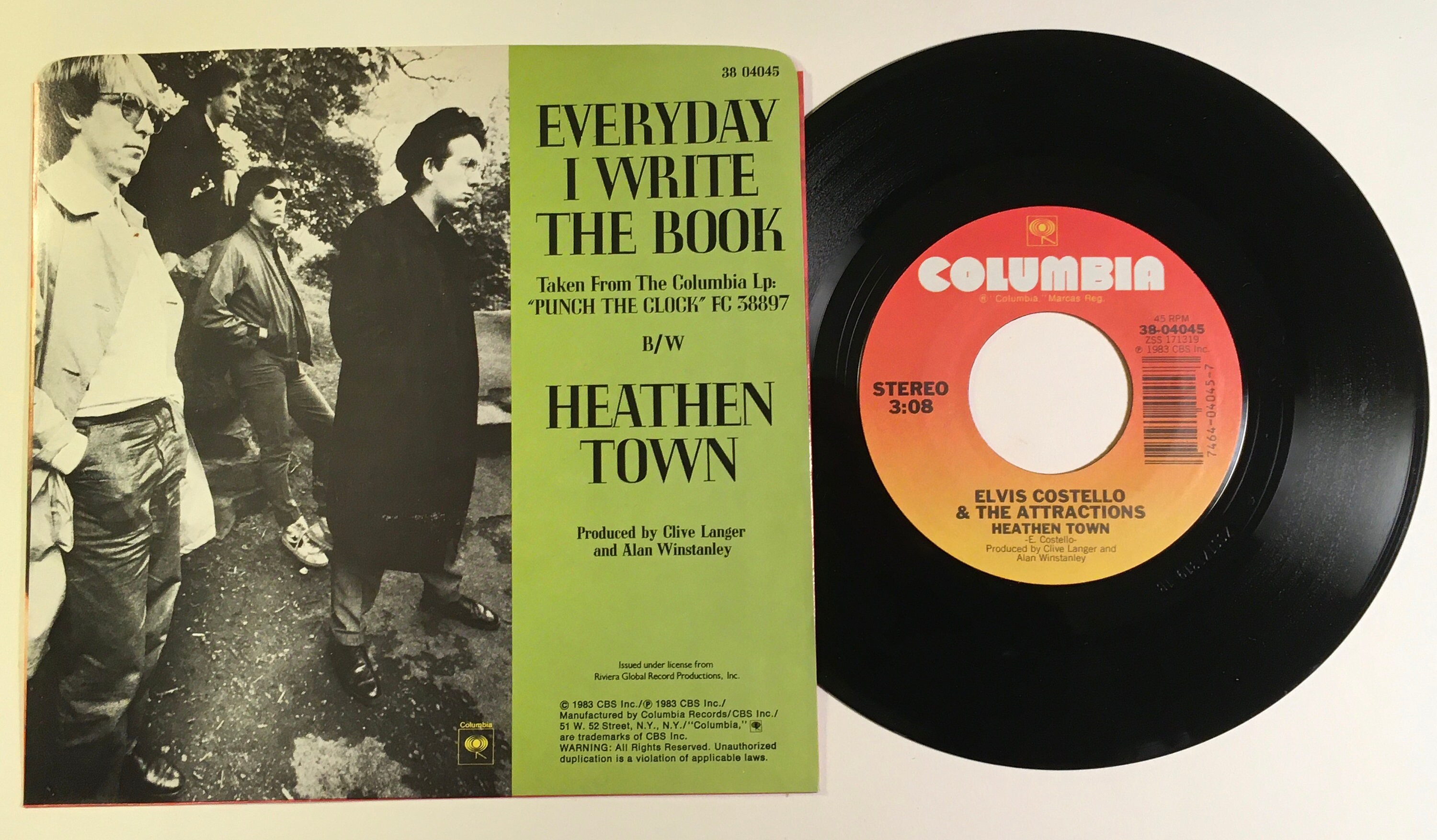 The singer-songwriter performs a classic track from the 1983 album by Elvis Costello and the Attractions Punch the Clock. Elvis Costello Everyday I Write The Book 1983 Uk Solid Centre 7 Vinyl Single Also Including Heathen Town. Elvis Costello The Attractions was a critically acclaimed pop and rock band formed by English musican Elvis Costello in 1977.